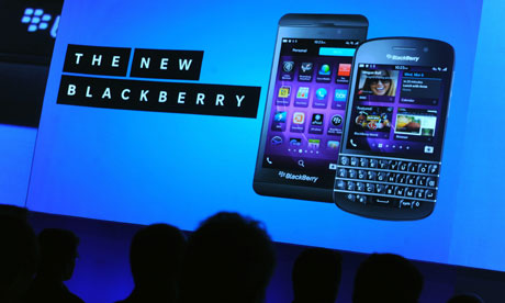 BlackBerry Z10 and Q10 – the new products have not prevented a fall in the company's share value. Photograph: Andy Rain/EPA